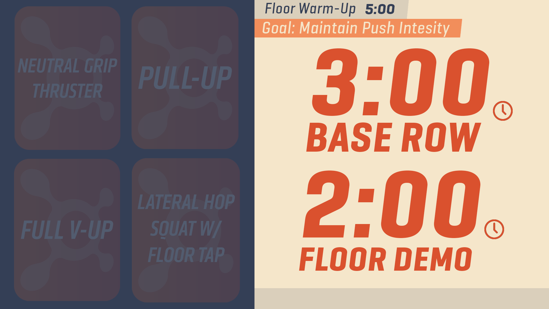 Orange Theory Fitness: Design for TV screens showing exercises on workout floor.